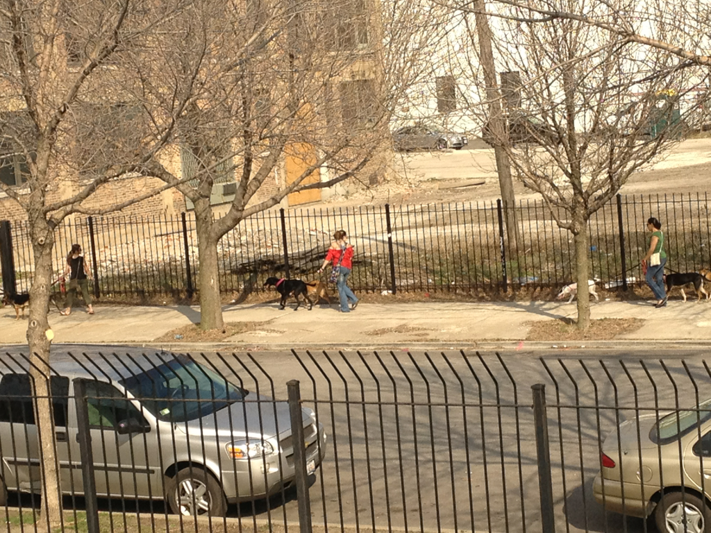When Betsy left to work at Razorfish, I decided to commandeer her desk. It’s really nice. It has lots of natural sunlight and a good view (minus Atkins’ head). One thing I noticed right away is that a lot of people walk their dogs along the street in front of said window. Maybe it’s just the unseasonal crazy nice weather. Anyway, I decided to start a Tumblr of pictures of people walking their dogs. Why? Why not?