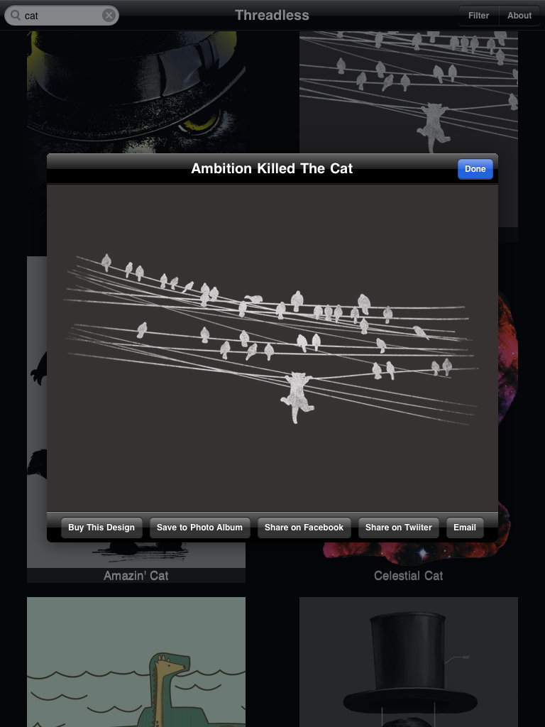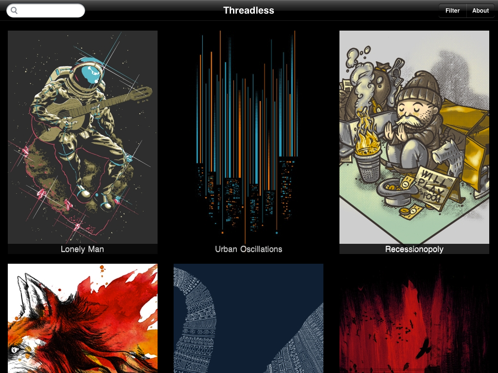 Hopefully the iPad app continues the mission of the iPhone app, which is to provide a really easy and fun way to browse and share awesome Threadless designs! I may have been an early iPad doubter, but I really believe that it’s a great device for consuming content. Even on my iPad 1, the designs and colors just pop on the app. At least I think so. But you don’t have to take my word for it!