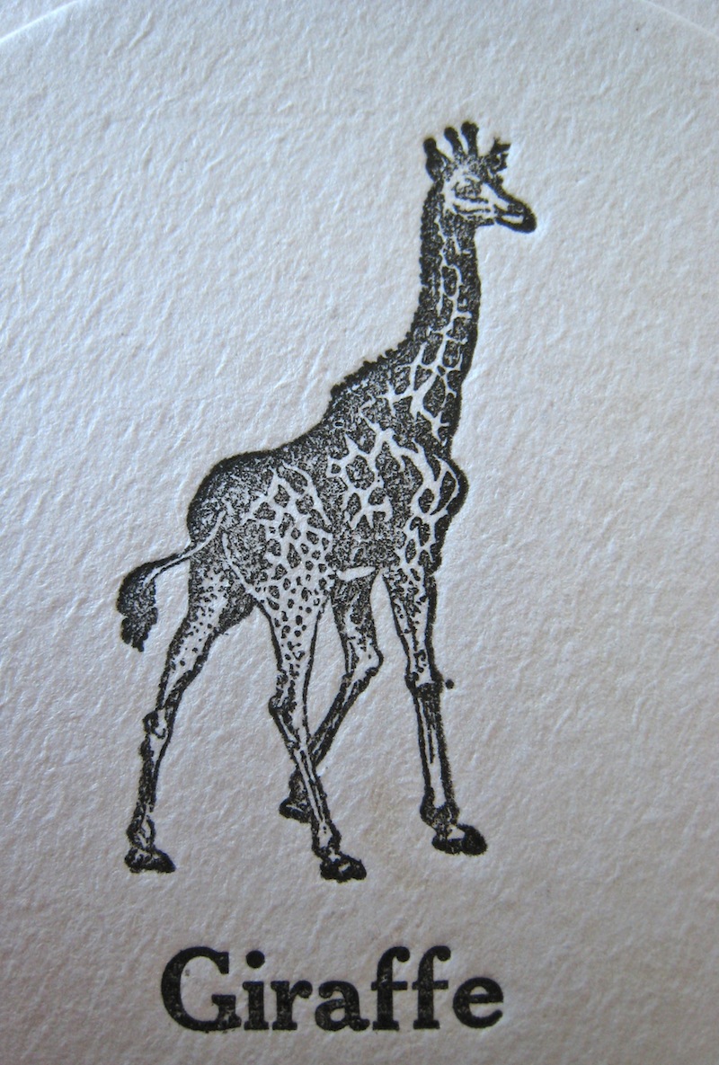 Letterpress Coasters – Giraffe!